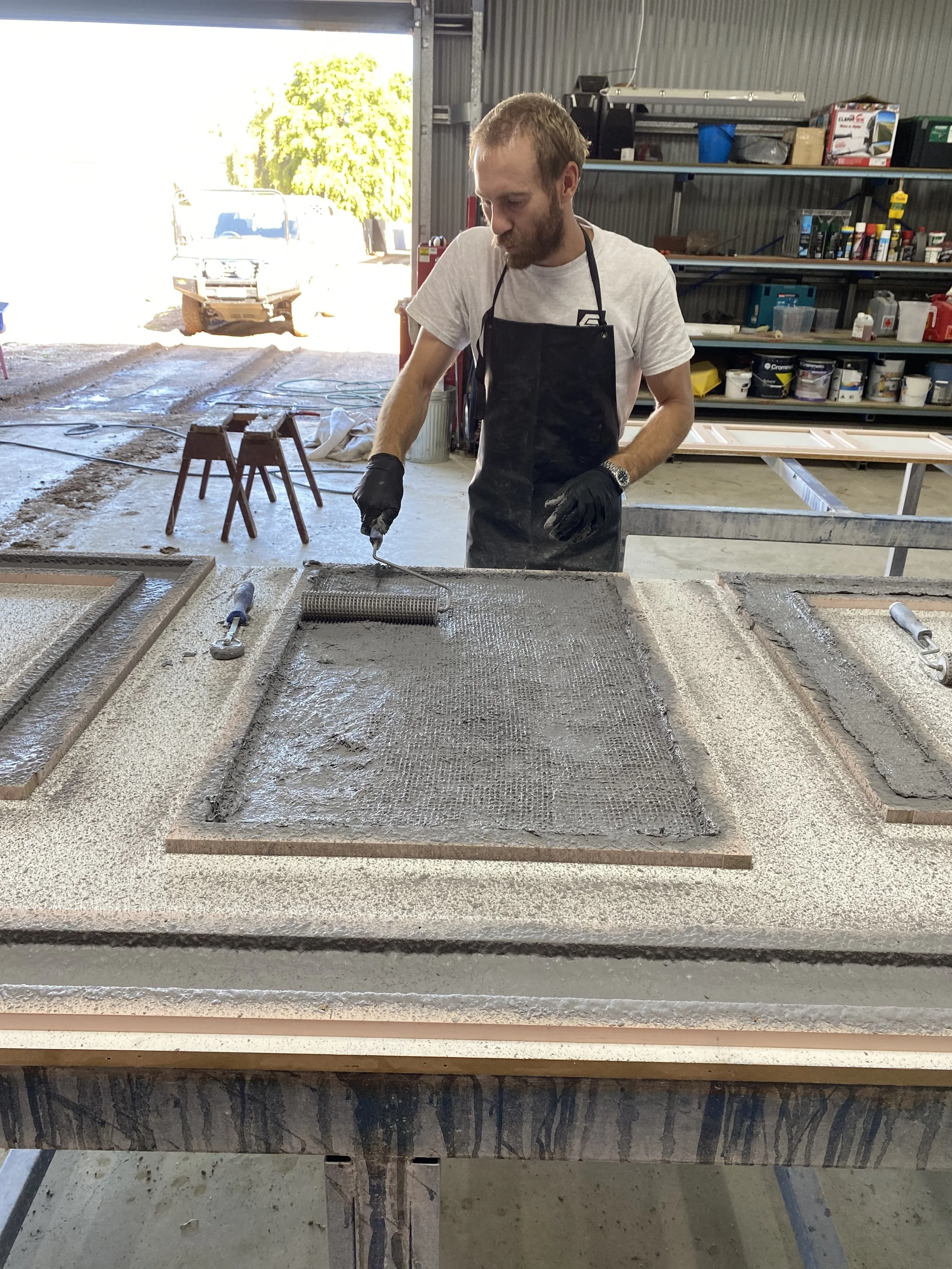 Our concrete artisan Nathan is the go to man when it comes to all things concrete. Beginning with a carpentry apprenticeship, Nathan has been around building sites for over 14 years. Over this period in time he has kept a keen eye out when any concreting is being done, got involved and learned a lot along the way. Once Nathans apprenticeship was over, he went out on his own as a sole trader with a primary focus on concrete. “The beauty of concrete is it’s versatility, durability, hardiness, lustre and relatively low cost in comparison to slate etc. Imagine taking a raw product then giving it colour, texture and shine, it really comes to life”. Plus, the possibilities are endless. If you can cast it, we can make it. 10 years + now working with all forms of concrete and we now have a fully operational supply chain obtaining the finest materials to embed in your next piece of art. Get in touch and ask Nathan about your new project. He is a very friendly guy, passionate about concrete and more than eager to please. admin@nj-neer.com.au